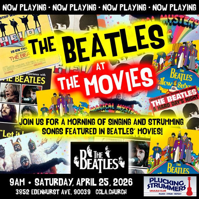 “Lights! Camera! Beatles!!!” THE PLUCKING STRUMMERS! PDF! FEB 25th! Lars will be leading us today. Join us Saturday April 25th for a Magical Musical Mystery Tour! I picked out a fun collection of songs from the Beatles official five movies. There’ll be some favorites and also a little off roading into some of their more unusual […] |